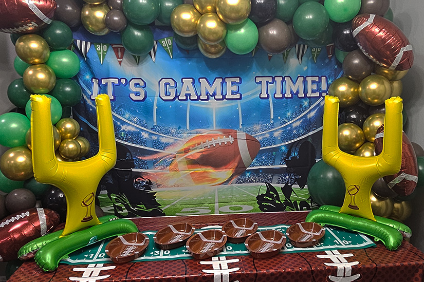 - 6 football-shaped snack trays