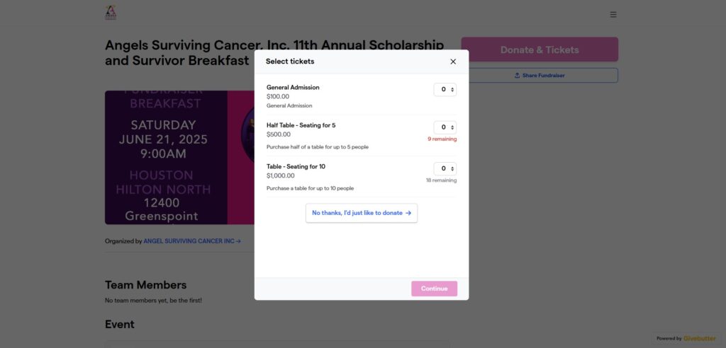 We integrated with GiveButter to accept donations and process fundraiser ticket sales