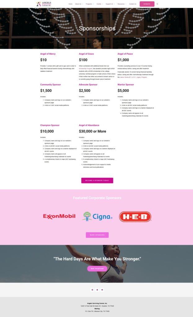 We completely re-designed a non-profit website for Angels Surviving Cancer, Inc. The extensive site includes pages for each of the organizations programs and resources.